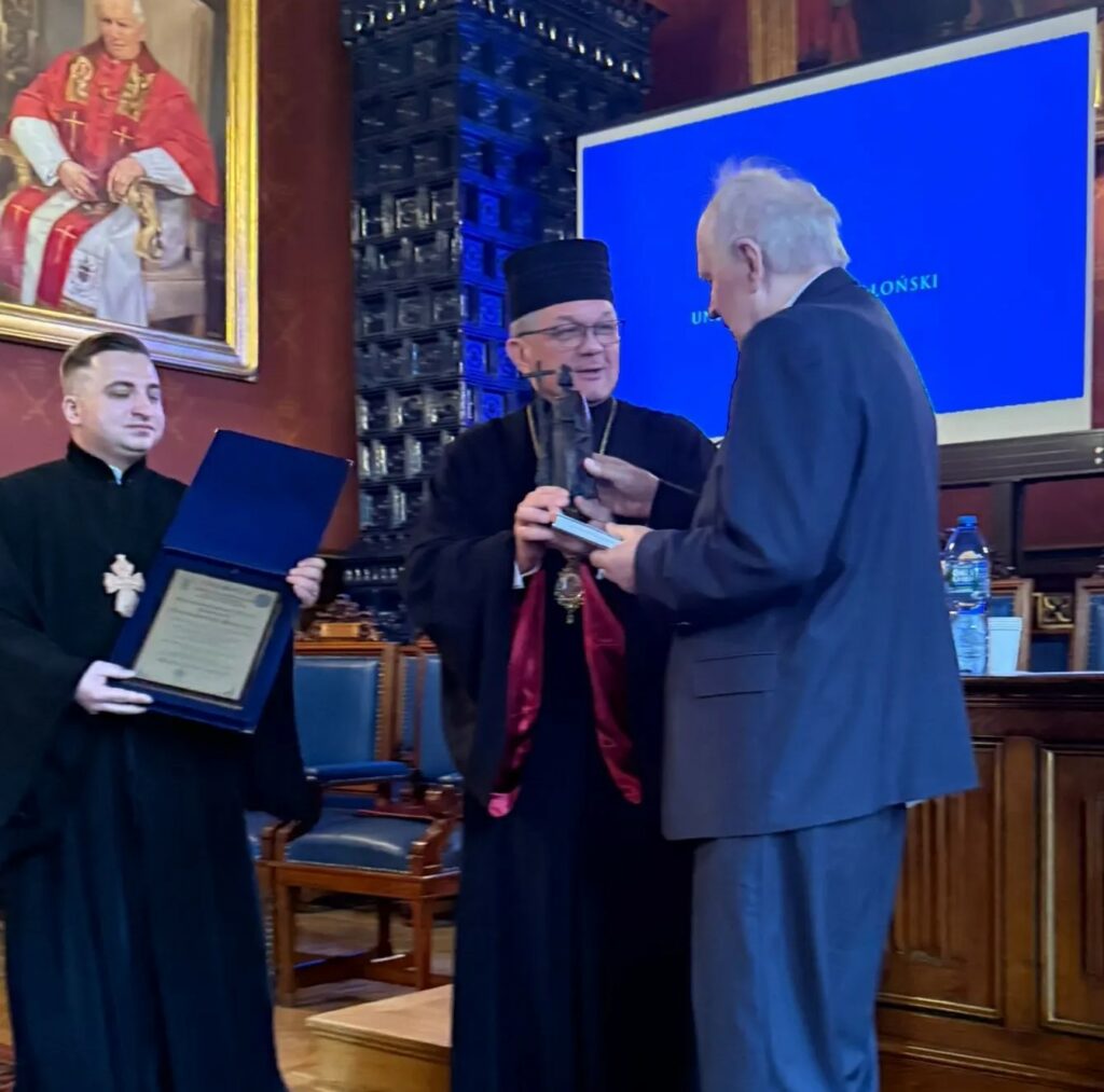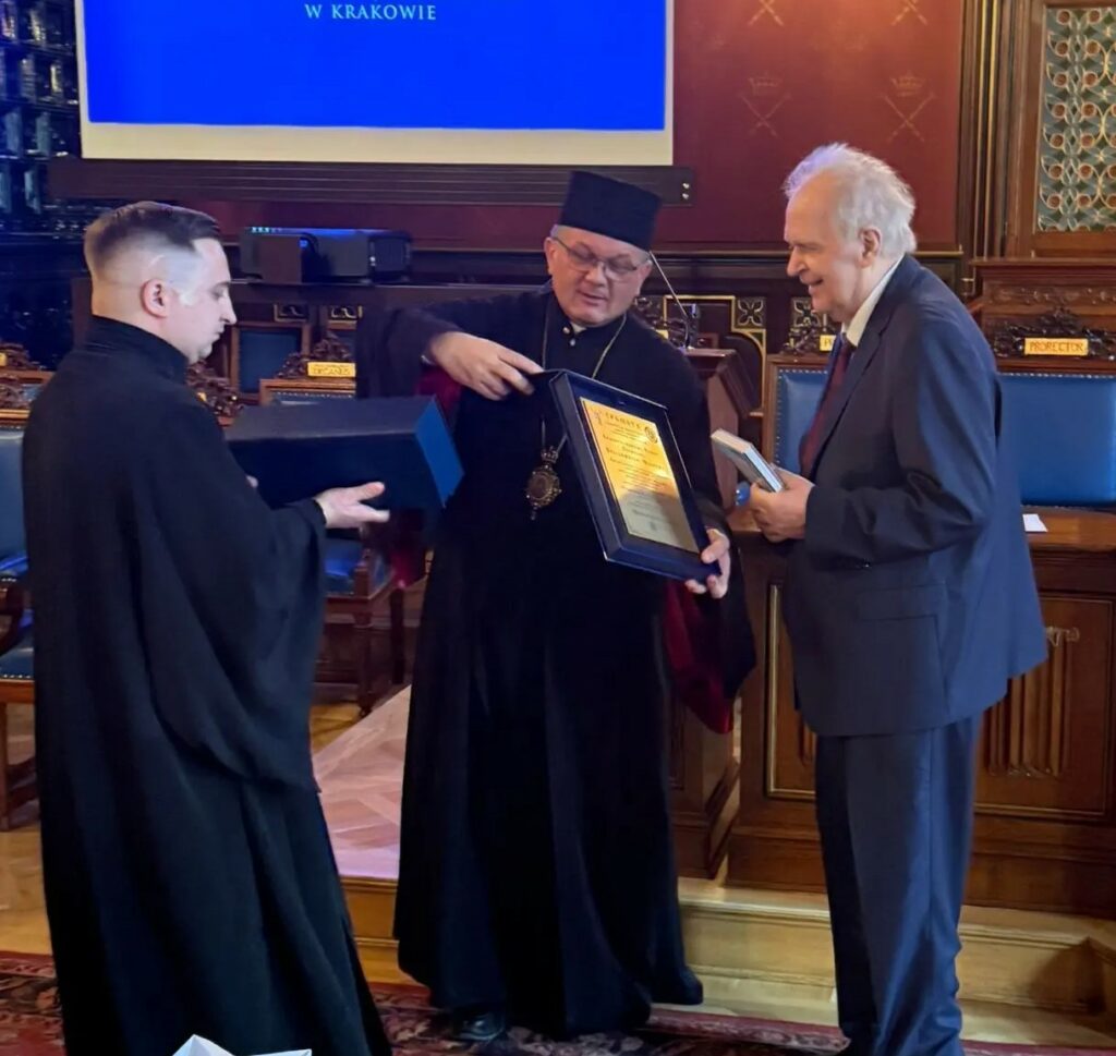17 жовтня 2025 р.Б. в Ягеллонському університеті відбулася урочиста подія вручення вельмишановному пану професору Володимирові Мокрому нагород Капітули Санктуарію св. Володимира Великого Хрестителя Руси – України при соборі Покрови Пресвятої Богородиці греко-католицької парафії в Гданську, до яких належить: статуетка св. Володимира Великого, медаль св. Володимира Великого та почесна грамота. Відзначення вручив особисто Голова капітули – єпарх Ольштинсько-Гданської Єпархії УГКЦ Владика Кир Аркадій Трохановський.